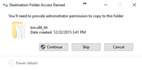 When we update Geopack DLM or the CDF library on Windows, we have to copy files in the "Program Files\Exelis\IDL84\bin\bin.x86_64" folder. When we try to copy files into folders that reside inside Program Files, Windows 10 (and probably older Windows versions, too) will ask for administrator permission as you can see in the following image. In that case, we just have to click the button "Continue". If we are logged in as a user without administration permissions, then we either have to log in as administrator, or perhaps ask the system administrator for the PC we are using. | |||
