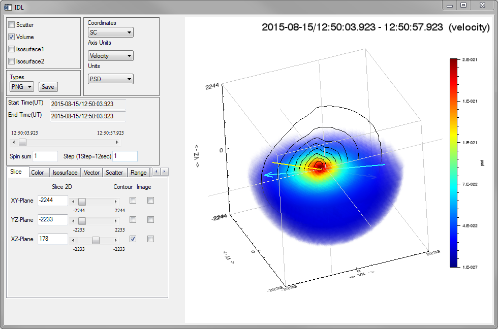 current | 00:00, 12 March 2016 | 980 × 648 (167 KB) | Floresaa (talk | contribs) | STEL3D tool displaying MMS FPI ion data. The plotted volume is data with V_z < 0. Contour lines are drawn along the x-z plane. |